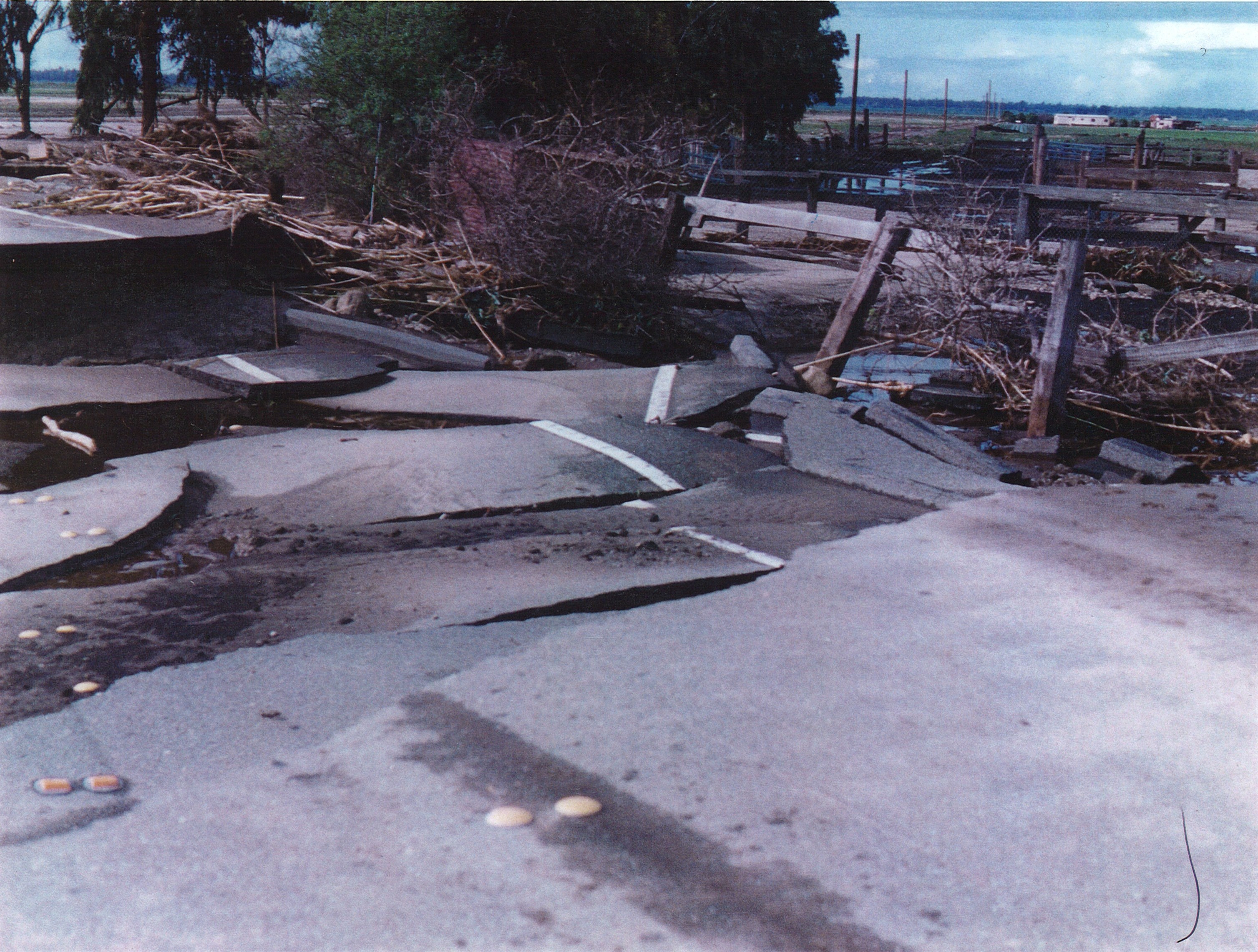 Multiple failures of levees along Calleguas Creek flooded agricultural fields between Calleguas Creek and Revolon Slough. Successive failure of levees along Revolon caused major damage at Point Mugu Naval Base. |