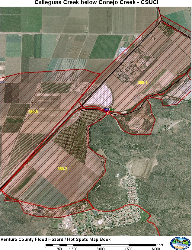 Breakouts should be occurring along Calleguas Creek below Conejo Creek. Flooding should be limited to areas along the creek but if flows are expected to be higher then flooding can occur to Lewis Road, Casa Pacifica, and Camrosa facilities. Evacuations should be underway if flows are expected to exceed 20,000 cfs at Casa Pacifica. |